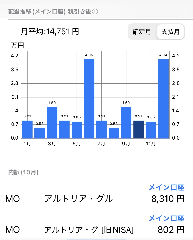 ちょうどMOの配当が到着する月なので画像に入れていました。