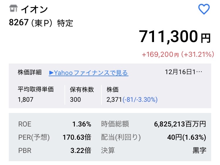 私の一番成績が良かった銘柄は、【8267】イ・オ・ン でした💛